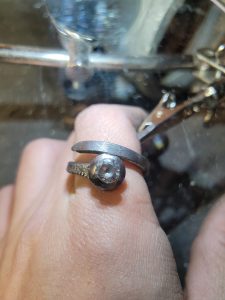 These rings are forged from reclaimed nails—specifically chosen for their ability to be heated, moved, and set while maintaining structural integrity. It is the transmutation of a common fastener into functional, wearable art. Reclaimed nails offer a structural integrity that mass-produced jewelry wire lacks. We take steel destined for a landfill and forge it back into something that will last a lifetime.