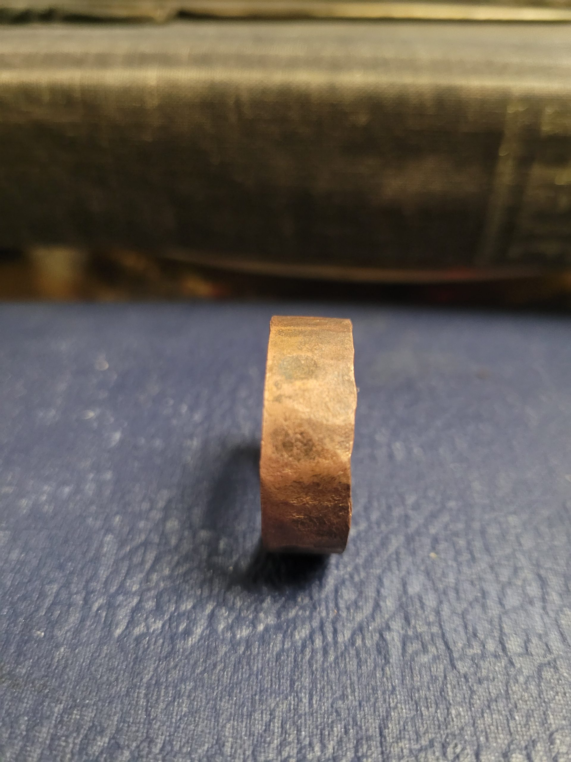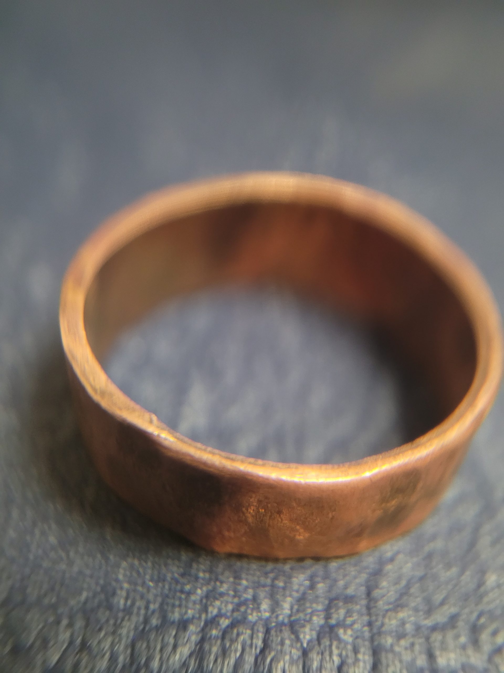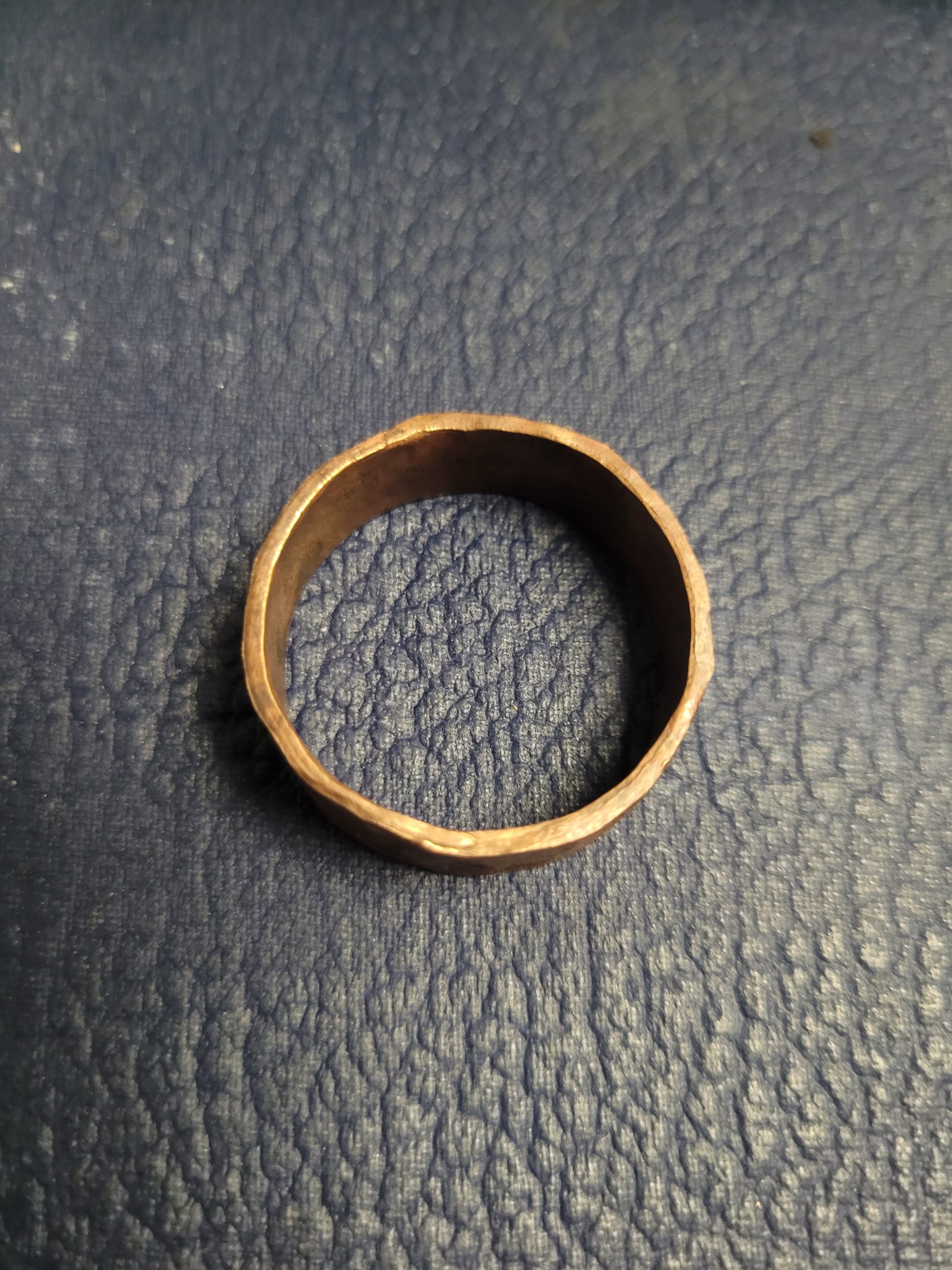 What emerged from that strange shower of blue cinders was a copper band hardened through pressure, strengthened by every moment of resistance. Its surface bears the ridges and scars of the process, not polished away, not hidden; because each texture, each hammer mark, reveals it’s true strength.